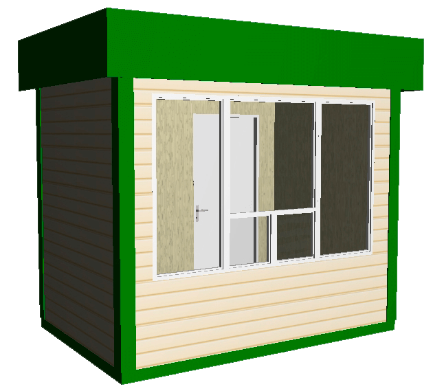 Крыша, одновременно является и потолком, выполнена из кровельной сэндвич-панели. Высота ската - 150 мм. Стандартный комплект электропроводки в наличии.