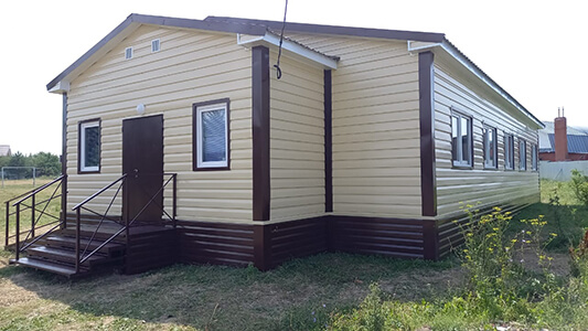 Данное здание было изготовлено на заводе и помодульно было перевезено и смонтировано на подготовленную площадку.