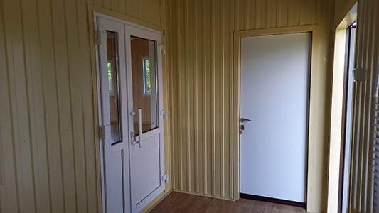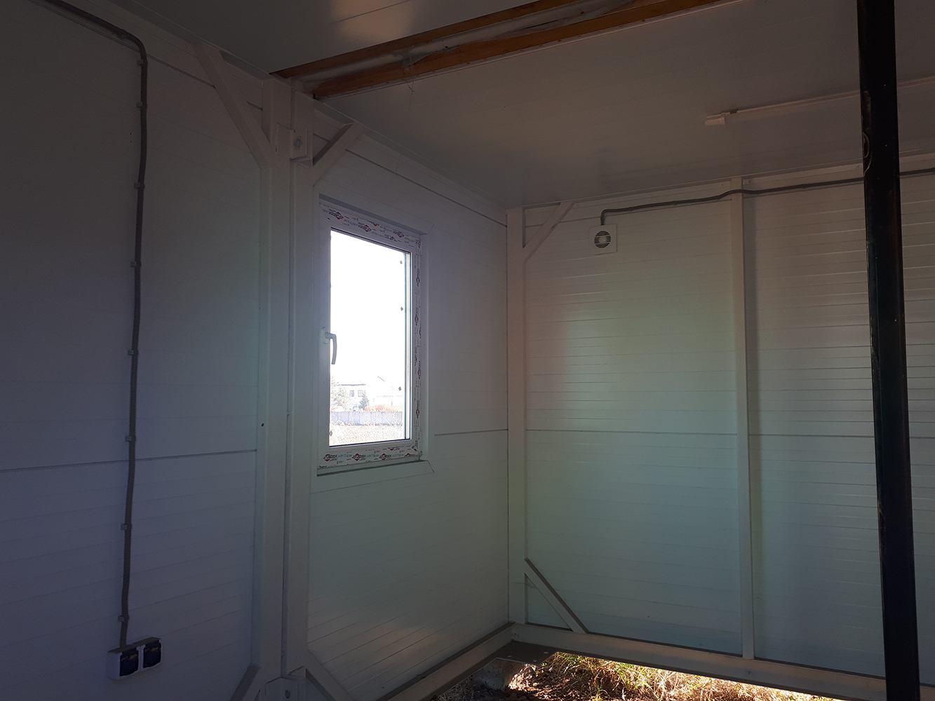 Внутренняя отделка - панели ПВХ. Окна и входные двери - ПВХ. Запасная дверь - металлическая утепленная.