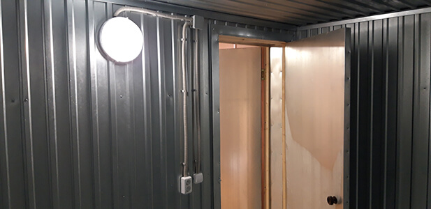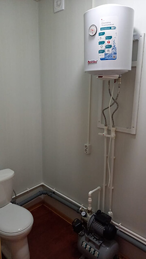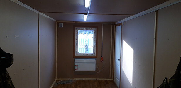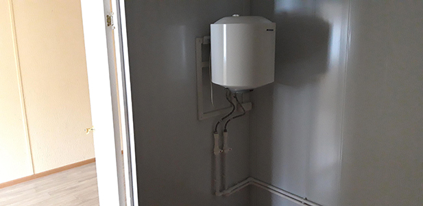 Бытовка укомплектована прибором отопления с нагревательными тенами.