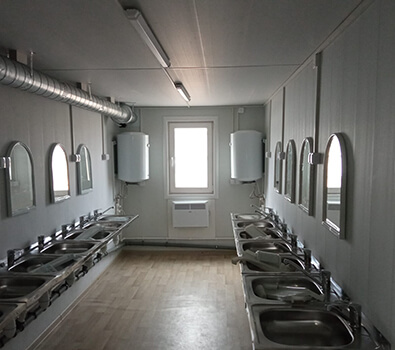 Кроме основного помещения в зданиях имеются санузлы и душевые кабинки.
