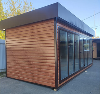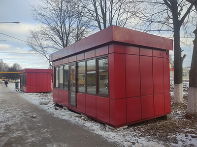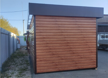 Данный павильон был изготовлен из сэндвич-панелей, благодаря чему оно имеет более современный и аккуратный вид.