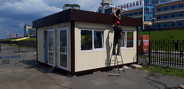 Для нужд речного порта г. Чебоксары нами было изготовлено модульное здание для прохода пассажиров к отходящим суднам - катерам, пароходам и другому водному транспорту.