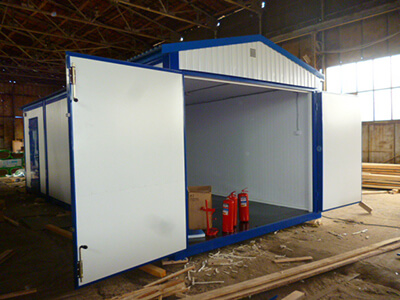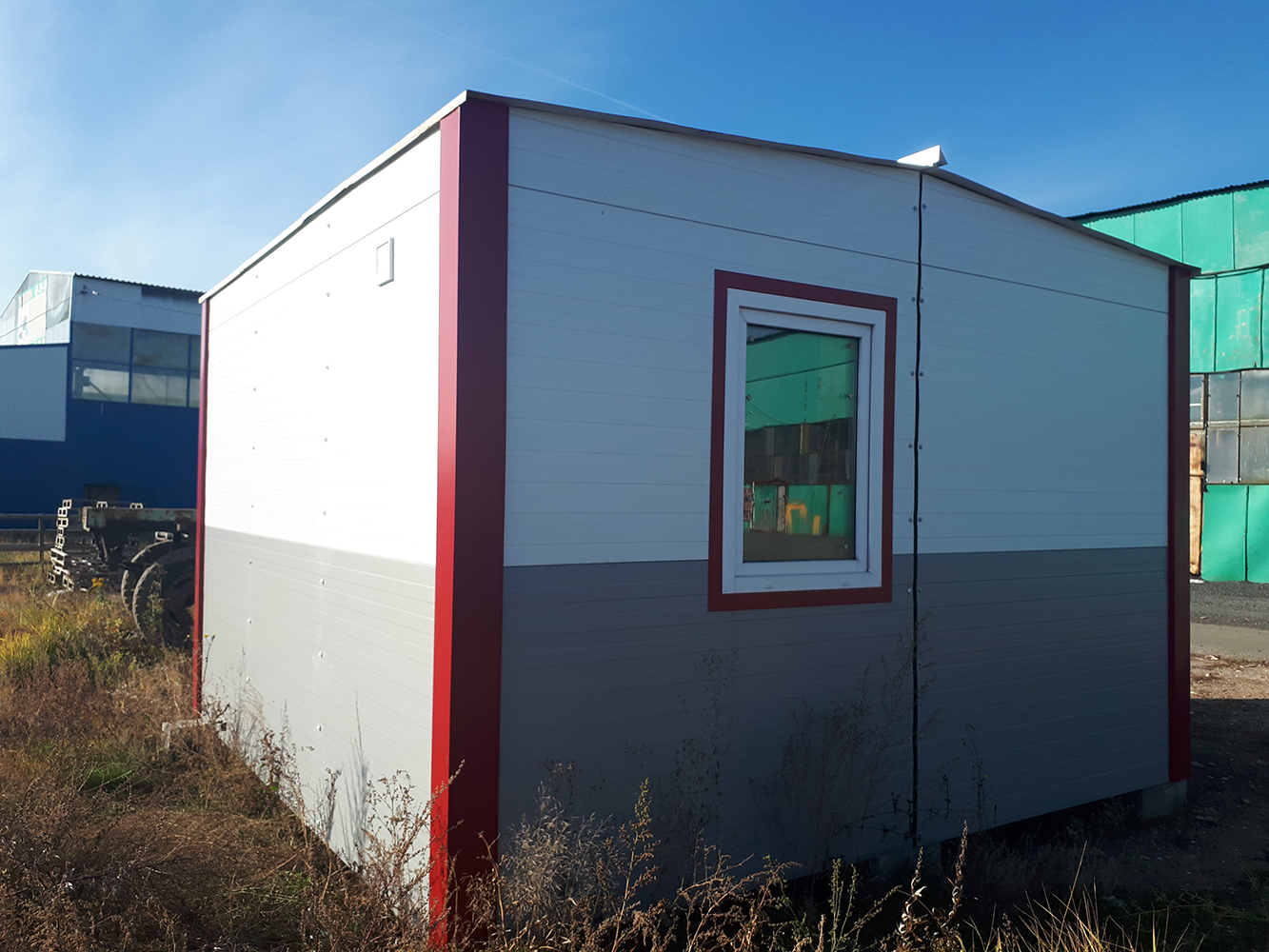Модульное здание может быть использовано в технических и складских целях на производственных плащадях, в очистных сооружениях.