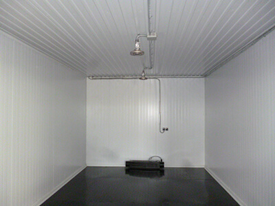 Стены выполнены из сэндвич-панелей без внутренней отделки, утепленные потолки подшиты окрашенным белым профильным листом.