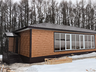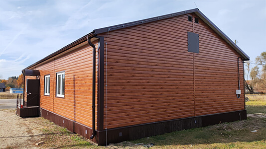 Внешняя обшивка здания - металлосайдинг под бревно.