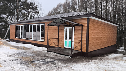 Данное здание было изготовлено на заводе и помодульно было перевезено и смонтировано на подготовленную площадку.