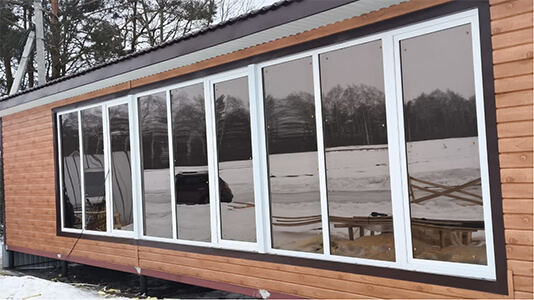 Окна - ПВХ. Входные и запасные двери - металлические утепленные.