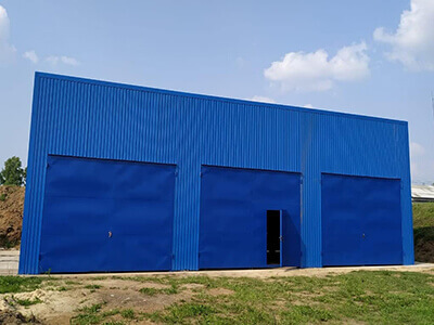 В Ядринском районе наша компания произвела строительно-монтажные работы по установке ангара для складирования строительных материалов, автозапчастей и другой промышленной продукции.