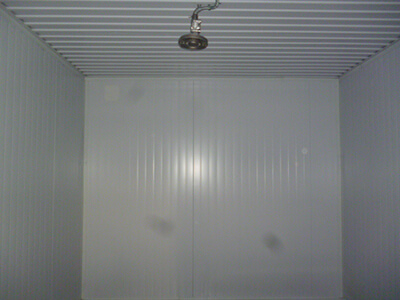 Стены выполнены из сэндвич-панелей без внутренней отделки, утепленные потолки подшиты окрашенным белым профильным листом.