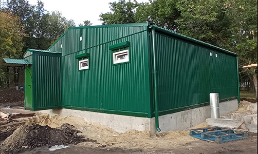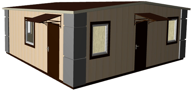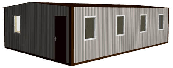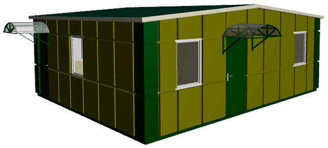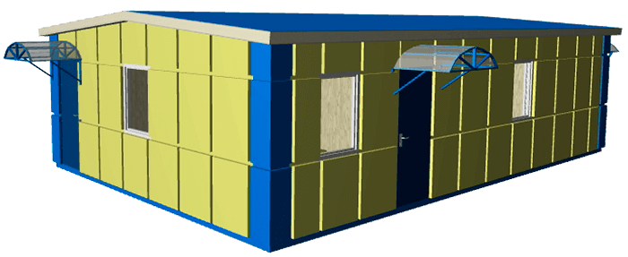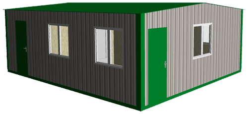 Модульное здание может быть использовано в технических и складских целях на производственных плащадях, в очистных сооружениях.