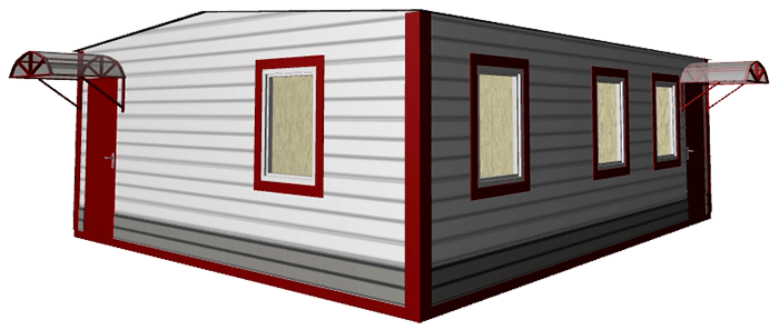Все блок-контейнеры в составе здания изготовлены на металлическом каркасе. Наружная обшивка из окрашенного профлиста белого цвета, внутренняя отделка модулей - согласно условий эксплуатации.