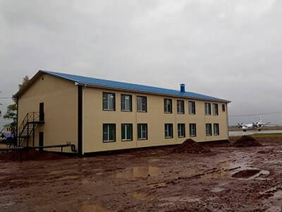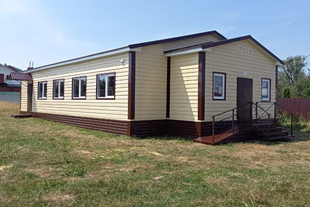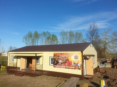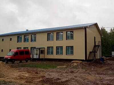 Данное здание было изготовлено на заводе и помодульно было перевезено и смонтировано на подготовленную площадку.