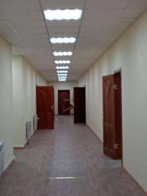 Потолки были смонтированы из панелей ПВХ в цвет к окраске внутренних поверхностей сэндвич-панелей. На потолке размещены светодиодные светильники.