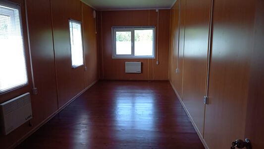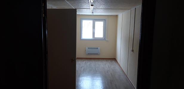 К данному объекту по желанию заказчика был применен эконом вариант, поэтому вся внутренняя отделка модулей из самого недорого материала - оргалита (двп).