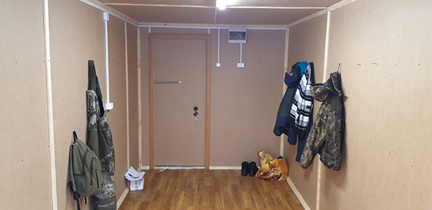 В составе помещений были предусмотрены и сушилки, чтобы рабочим можно было просушить промокшую под дождем иснегом одежду. Изнутри сушилки обшивались оцинкованным профлистом. Он прекрасно служит в качестве отражателя тепловой энергии, нагоняемой конвекторами внутри помещения.